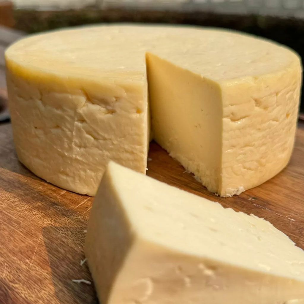 • Forma e Tamanho: O queijo possui formato redondo e altura média, com um diâmetro que pode variar entre 18 a 25 cm. O peso costuma ser de 1,5 a 2 kg, dependendo da produção.